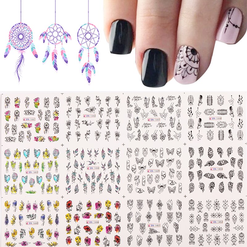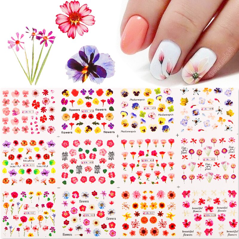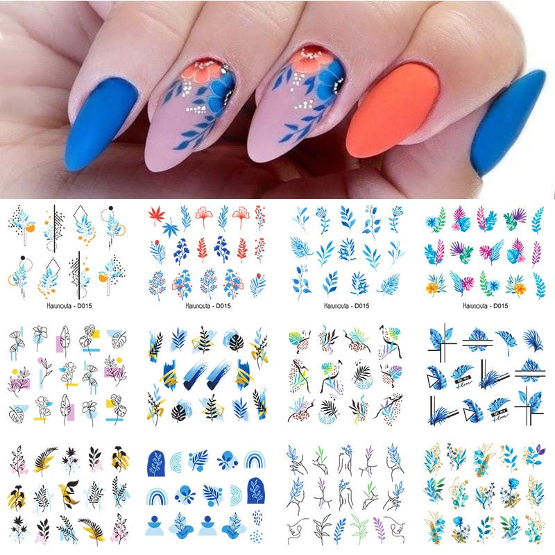 12pcs Gradient Marble Water Nail Stickers Flower