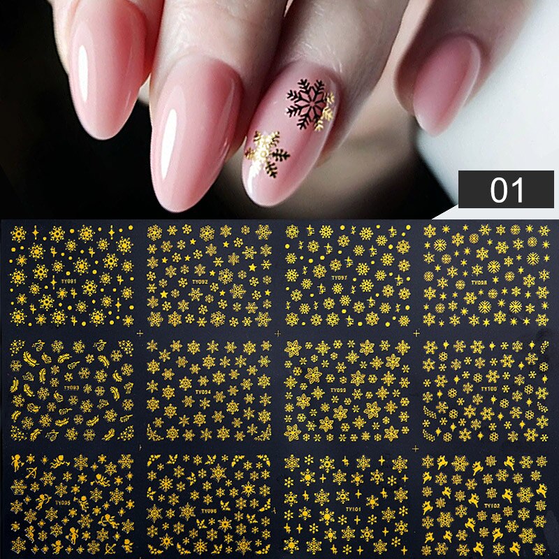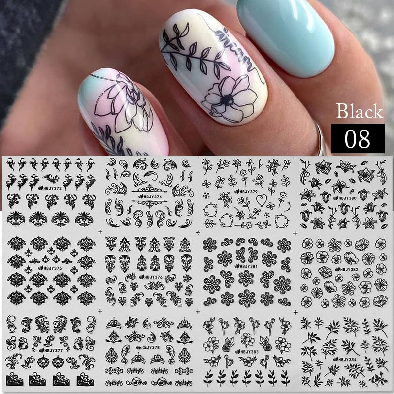 3D Stickers Gold Flower Leaf Lace Design Geometry Line Nail