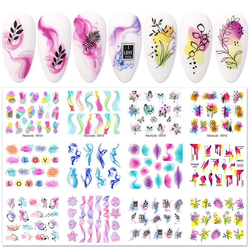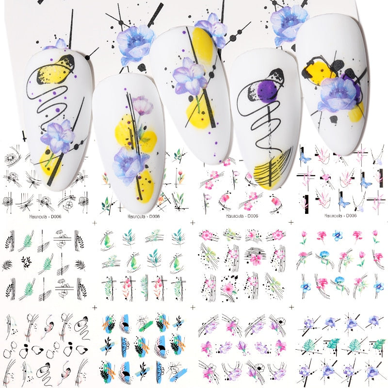 Winter Water Stickers Pink Cherry Blossoms Decals Flowers Nail